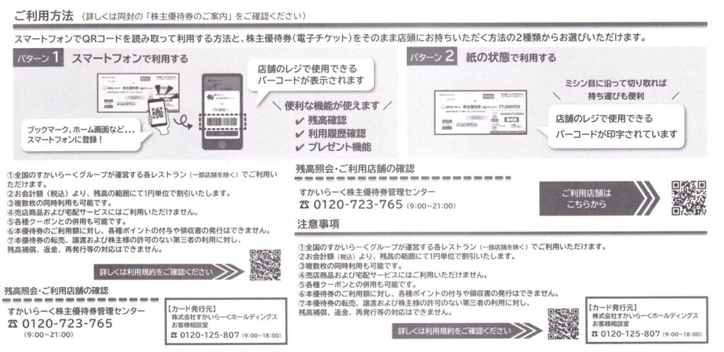 すかいらーくホールディングスから株主優待が届きました。