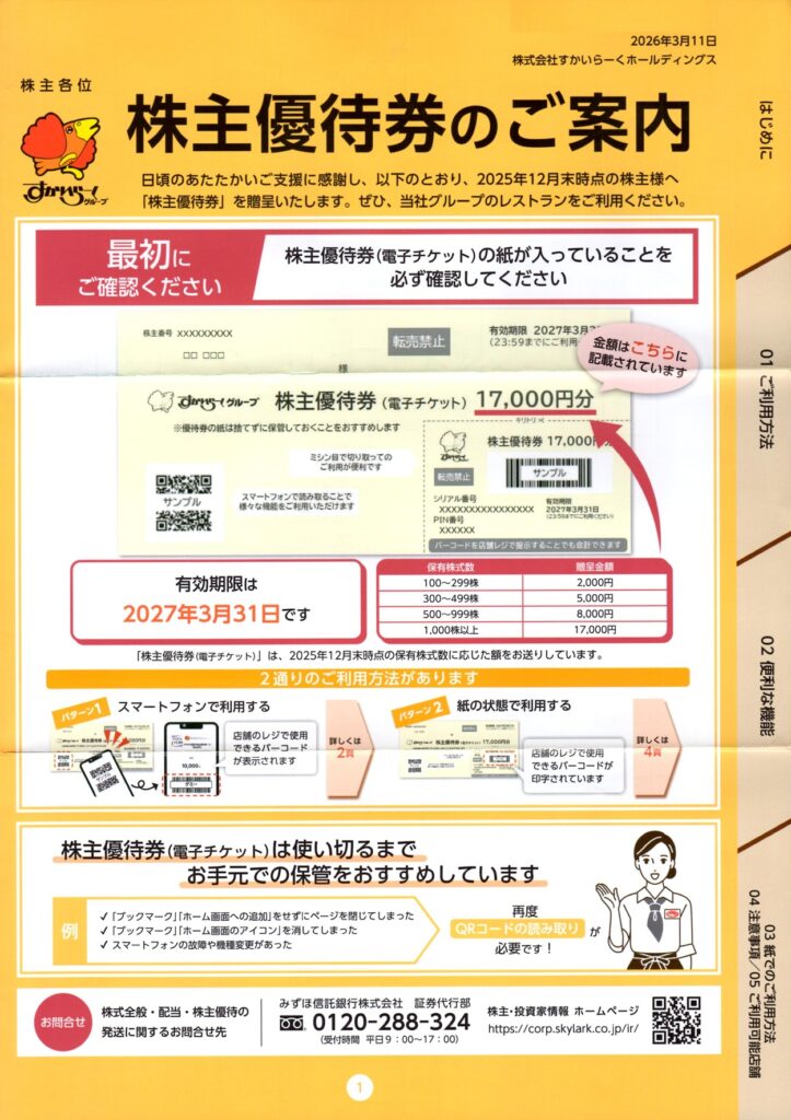 今回は、ガストやバーミヤンでおなじみのすかいらーくホールディングス(3197)から届いた株主優待を紹介します。