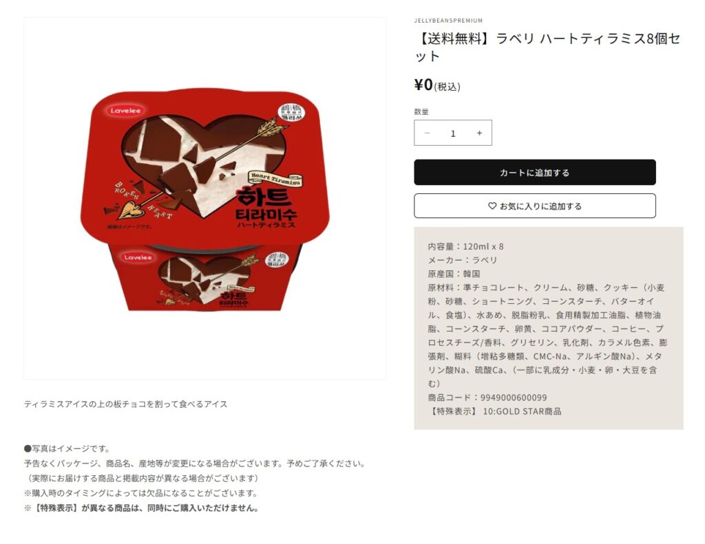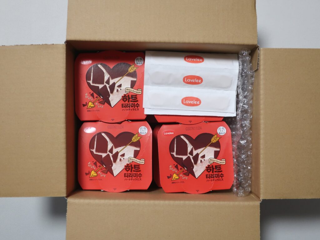 冷凍便で届いたのは、韓国で話題となった人気アイス「ラベリ ハートティラミス」のセットです。