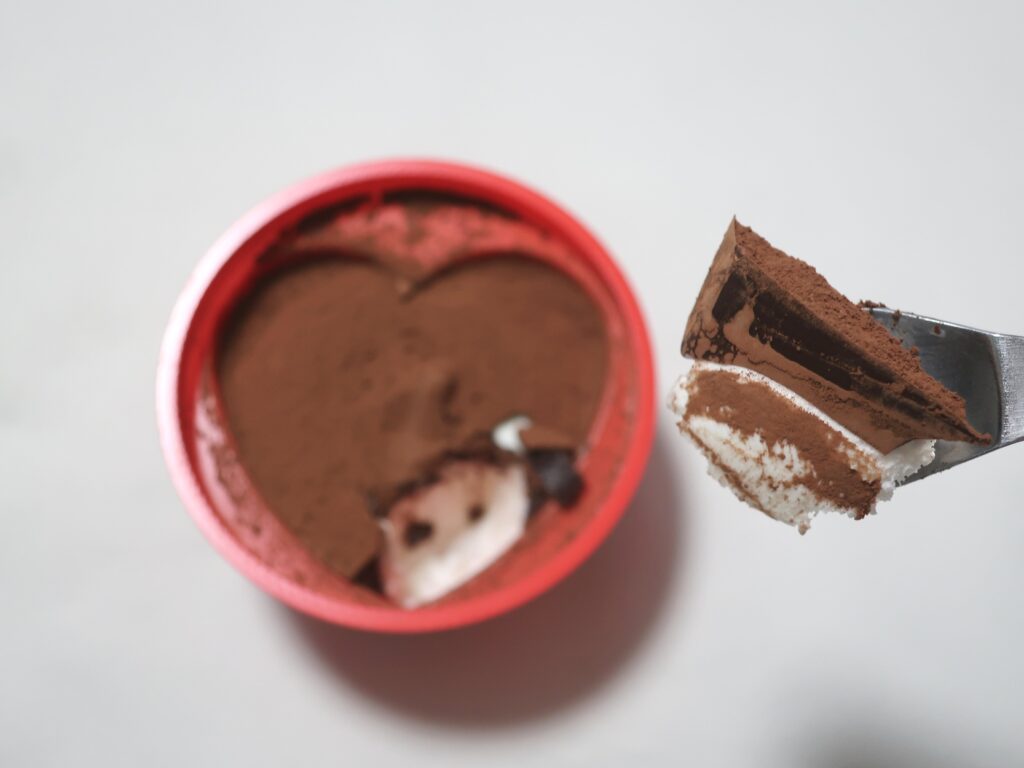 そのため、全体としては「ティラミスアイス」というより、“ティラミス風の甘めアイス” という印象でした。