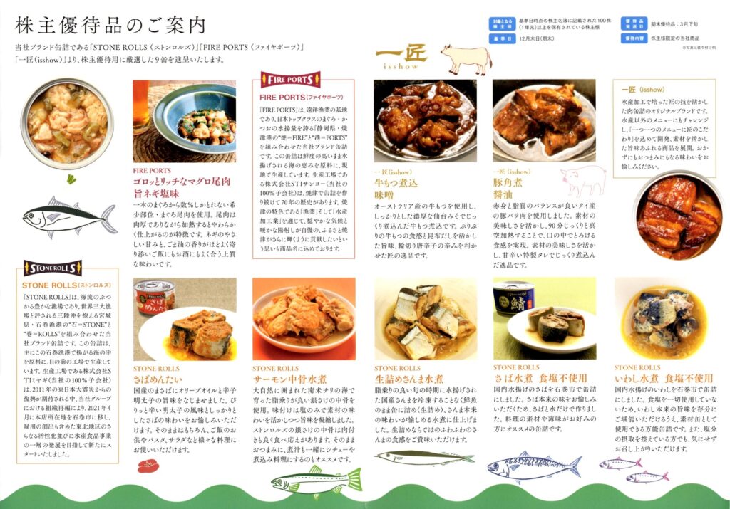 STIフードホールディングスでは、毎年12月末の権利確定日に以下の内容の優待がもらえます。