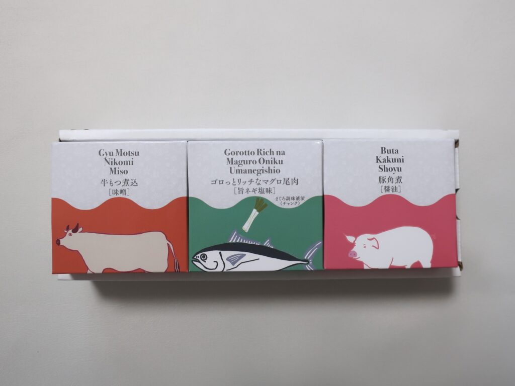 紙のパッケージに入っている缶詰は3種類。