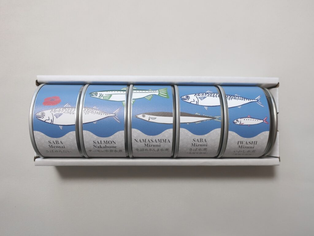 そして、5種類の缶詰は並べると絵柄がつながる特別仕様になっています。