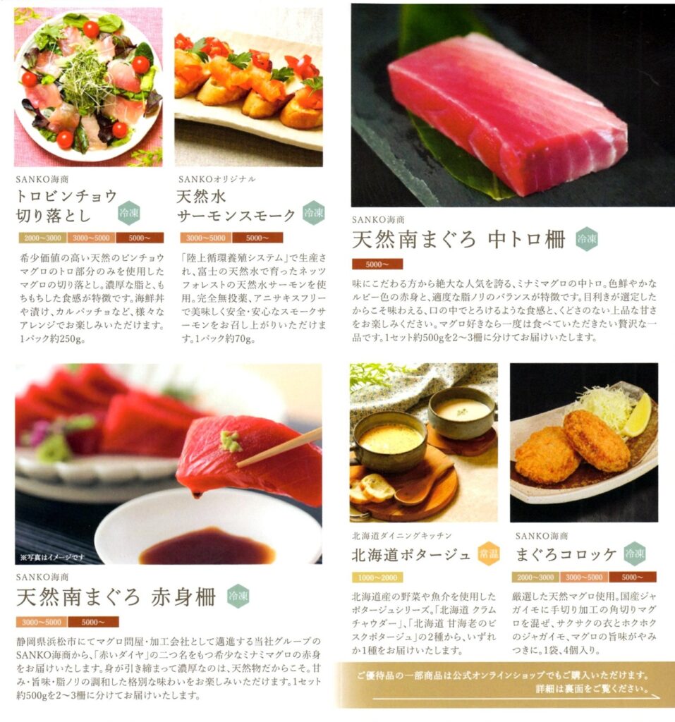 SANKO MARKETING FOODSでは、毎年6月末と12月末の権利確定日に以下の内容の優待がもらえます。