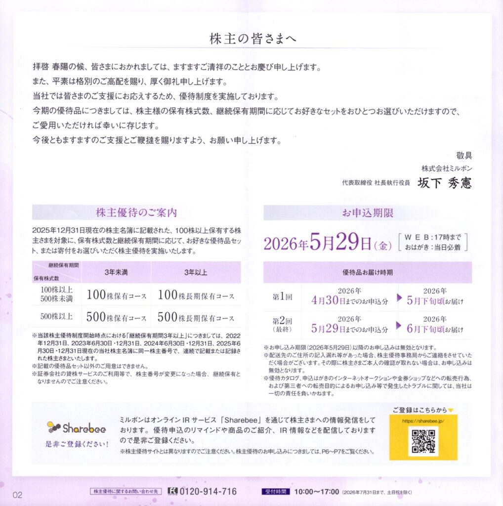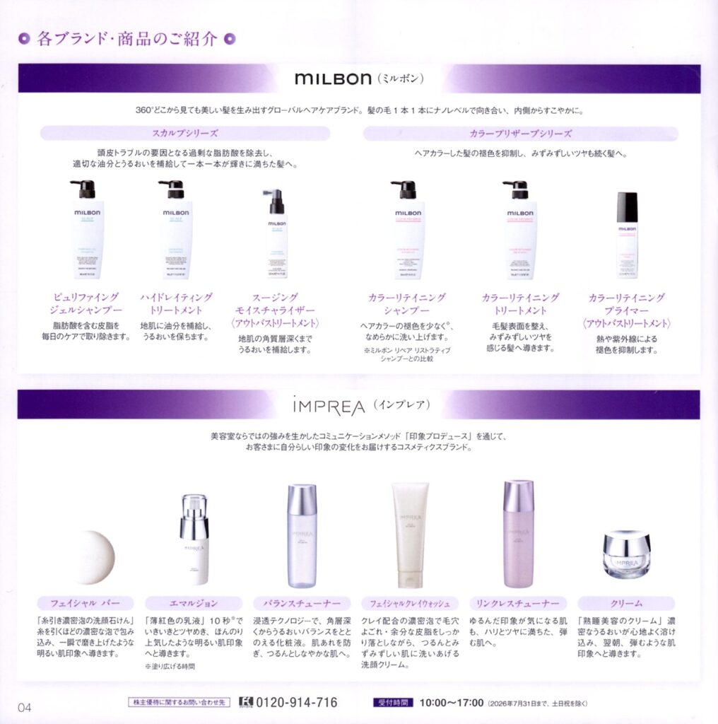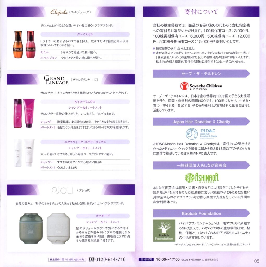 ミルボンから株主優待の案内が届きました。