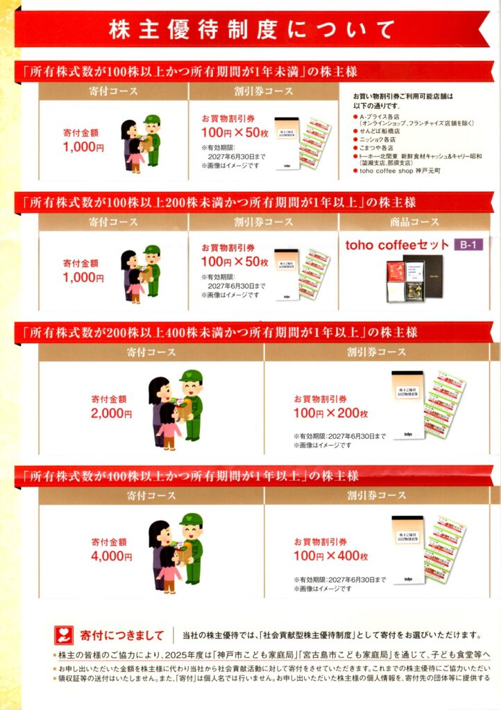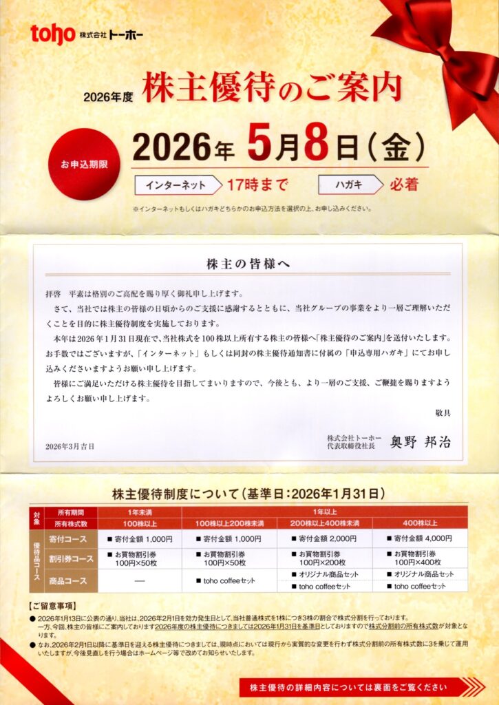 トーホーから株主優待の案内が届きました。