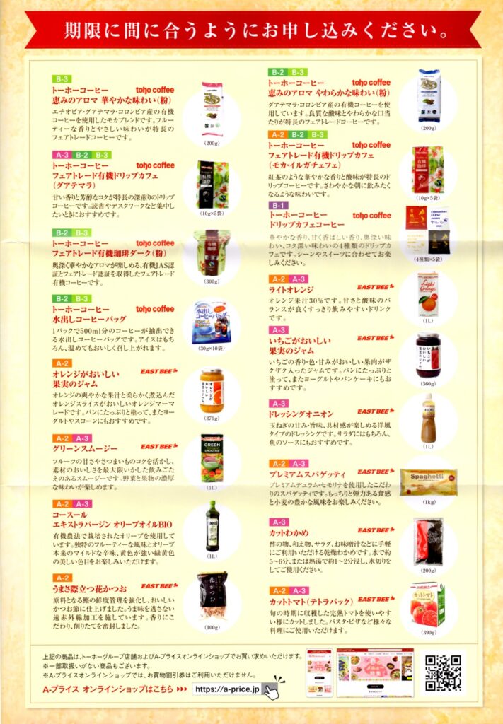| 商品コース | - | toho coffeeセット | オリジナル商品セット または toho coffeeセット | オリジナル商品セット または toho coffeeセット |