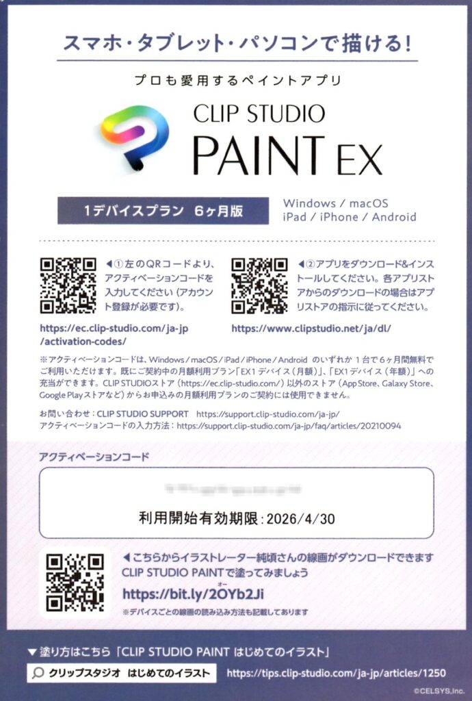 200株なので、「CLIP STUDIO PAINT EX 6ヶ月版」のアクティベーションコードです。