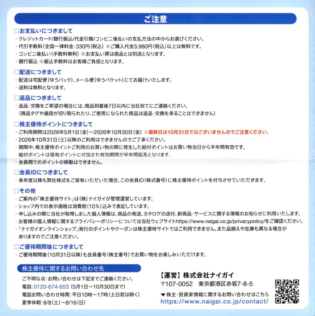 ナイガイから株主優待が届きました。