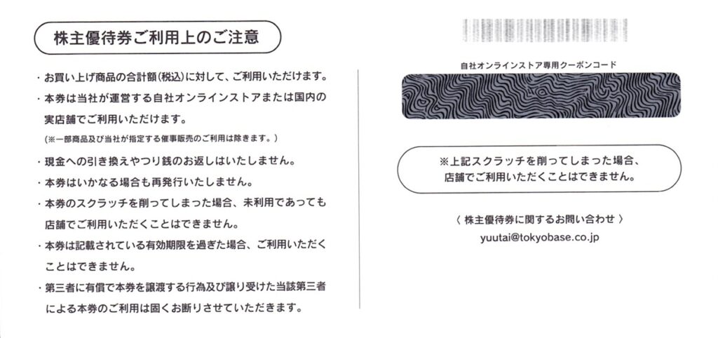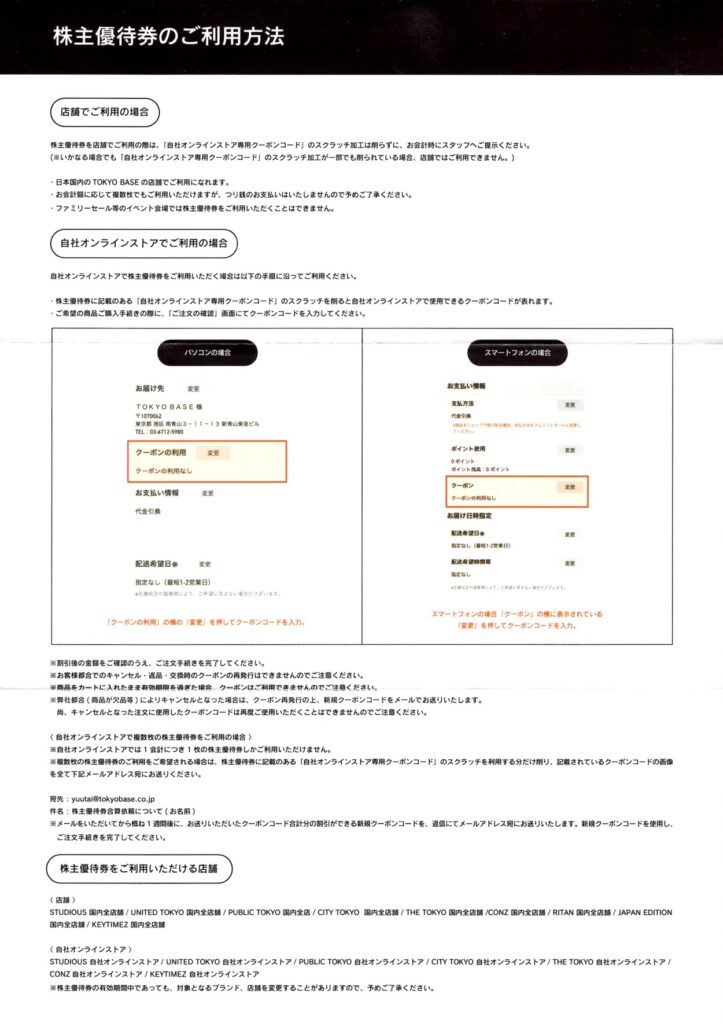 今回は、セレクトショップのSTUDIOUSやUNITED TOKYOでおなじみのTOKYO BASE(3415)から届いた株主優待を紹介します。