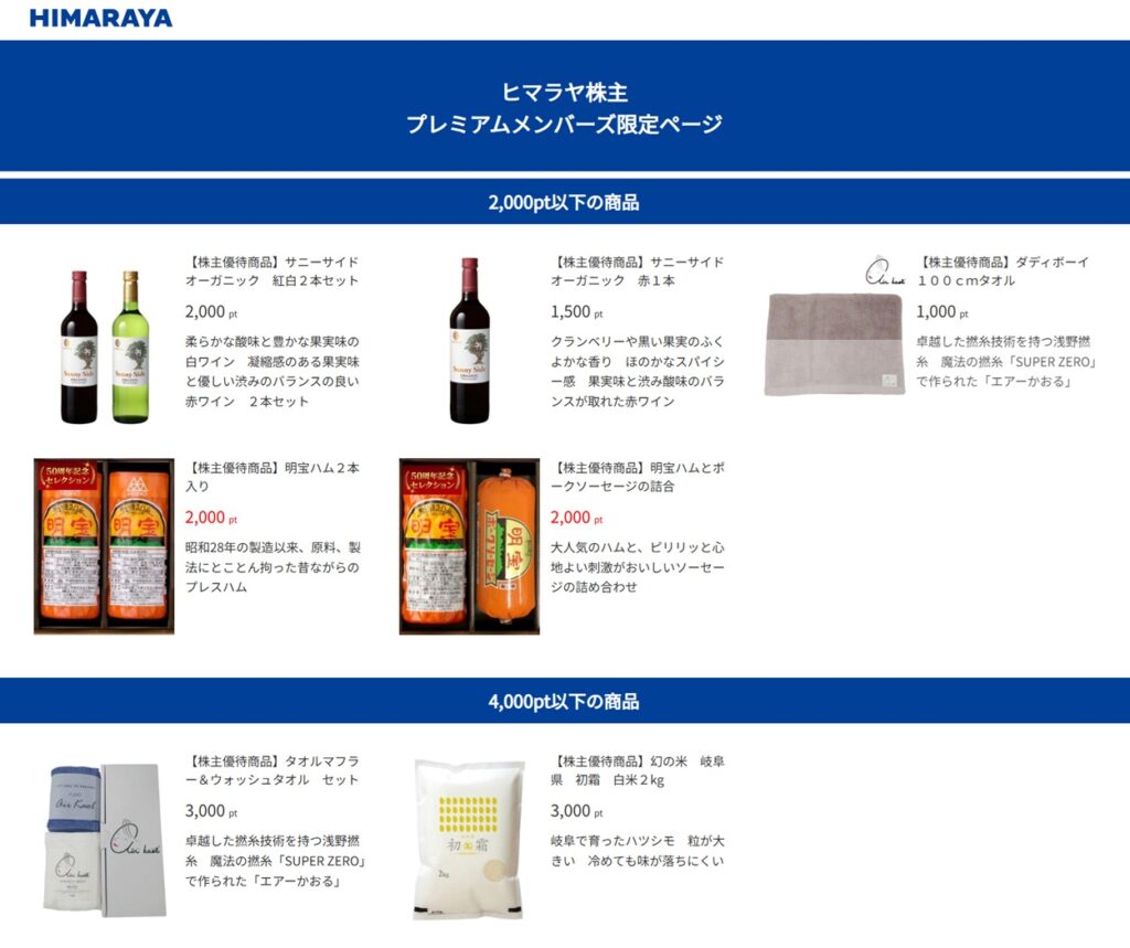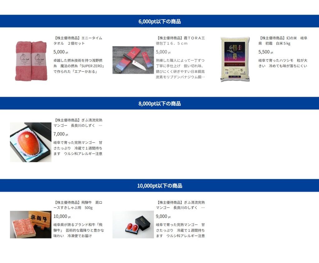 尚、「ヒマラヤ株主プレミアムメンバーズ限定ページ」には、、岐阜県の特産品を中心とした魅力的な商品が13点掲載されていました。
