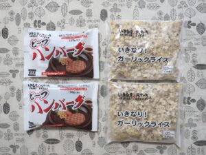 ハンバーグとガーリックライスのセットで、外食気分を味わえる豪華なラインナップでした。