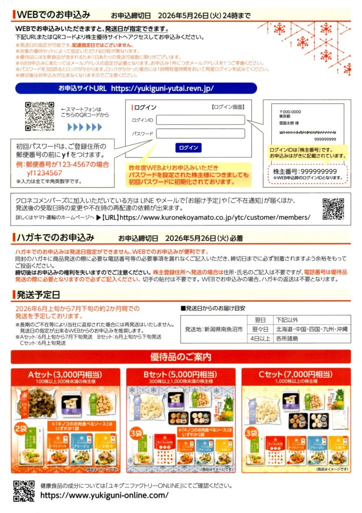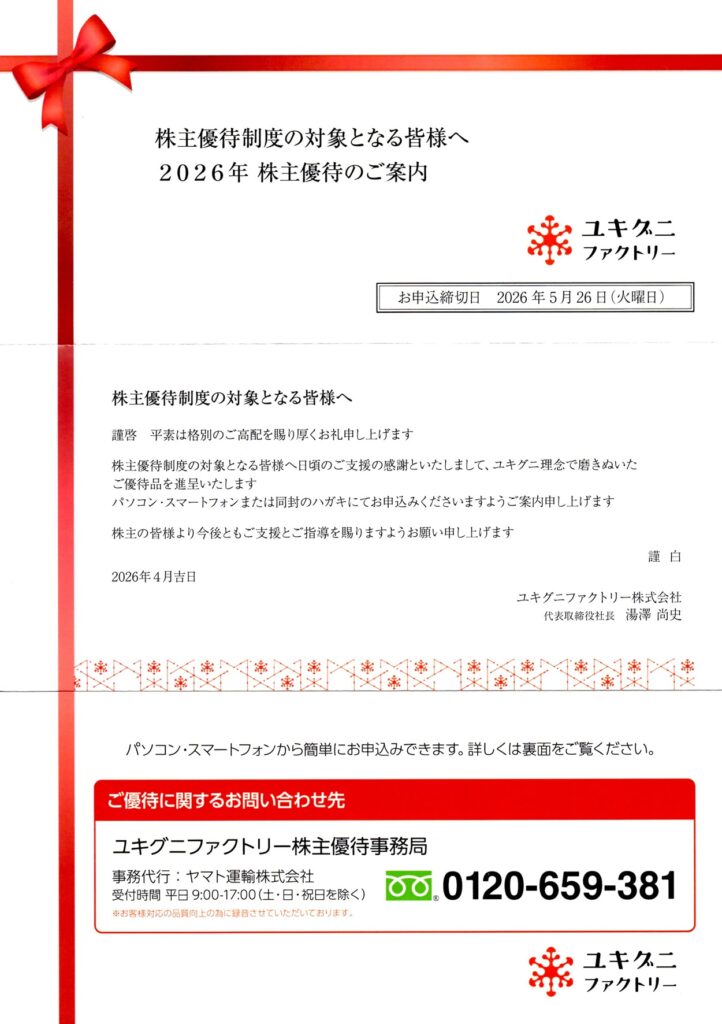 ユキグニファクトリー(1375)から株主優待の案内が到着