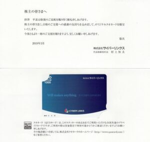 尚、サイバーリンクスの株主優待は今回を最後に廃止となりました。