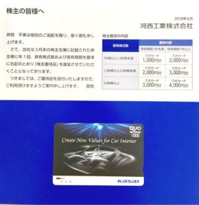 今回は、自動車の内装部品でおなじみの河西工業(7256)から届いた株主優待を紹介します。
