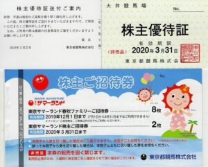| 所有株式数 | 大井競馬場 株主優待証 | 大井競馬場 株主優待席証 | 東京サマーランド 株主招待券 | 東京サマーランド 春秋ファミリー招待券 |