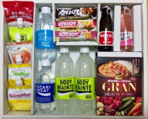 今回はカロリーメイトなど14点の詰め合わせでした。