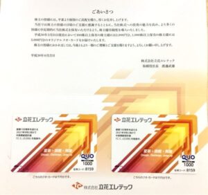 立花エレテックから株主優待が届きました。