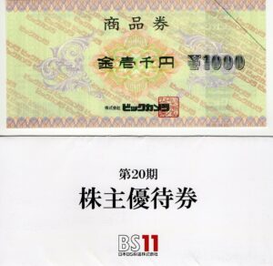 100株なので「1,000円分のビックカメラ商品券」です。