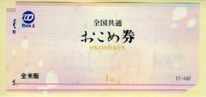権利確定日は2020年12月末。保有株式数は100株。届いた優待品「2kg分のおこめ券」を写真で紹介します。