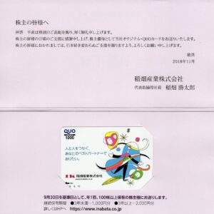 権利確定日は2018年9月末。保有株式数は100株(3年未満)。届いた優待品「1,000円分のクオカード」を写真で紹介します。