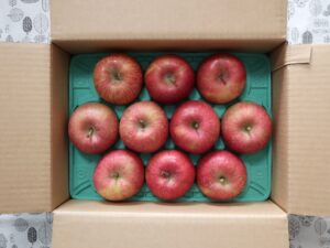 権利確定日は2025年3月末。保有株式数は100株(半年以上)。届いた優待品「葉とらずりふじ 3kg」を写真で詳しく紹介します。