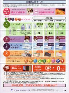 | 100株以上 | 自社グループ商品等の中から一つ選択 (500円~2,100円相当) + 婚礼割引券 & 食事割引券 |