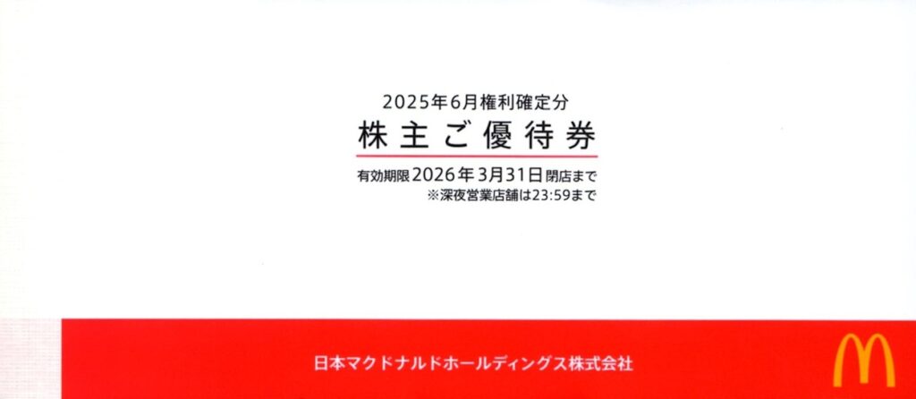 日本マクドナルドホールディングス(2702)から株主優待が到着