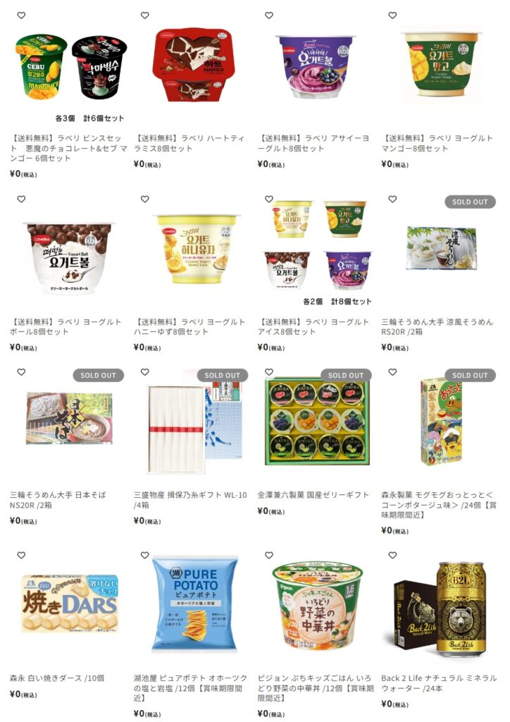 夕方頃にサイトを見たので結構売り切れとなっている商品もあります。