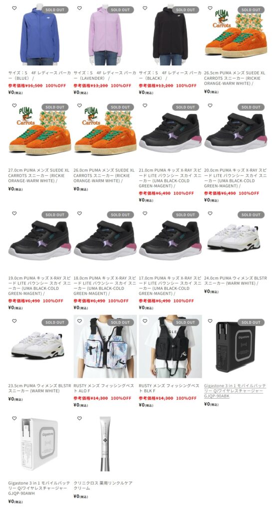 ちなみに、商品名の頭に【送料無料】と記載のある商品は送料無料で貰うことができます。
