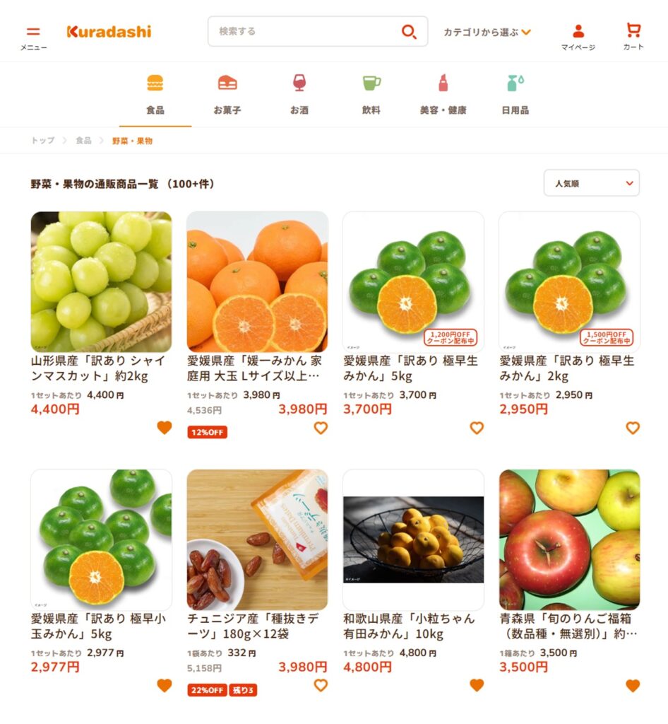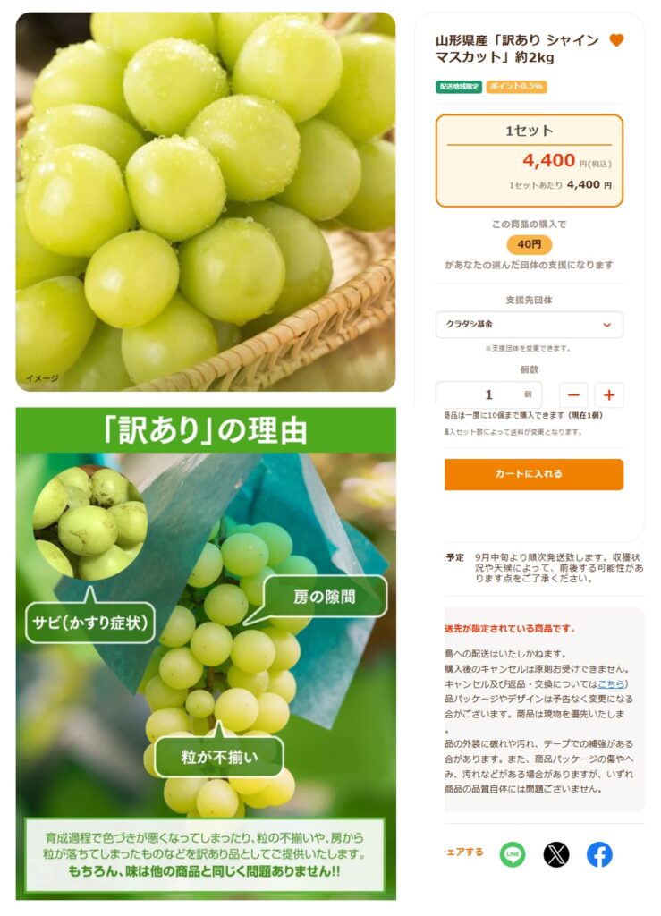 「Kuradashi」は、フードロス削減を目的とした社会貢献型ショッピングサイト。購入金額の一部を、自分が応援したい社会貢献団体へ寄付できるというユニークな仕組みも特徴です。