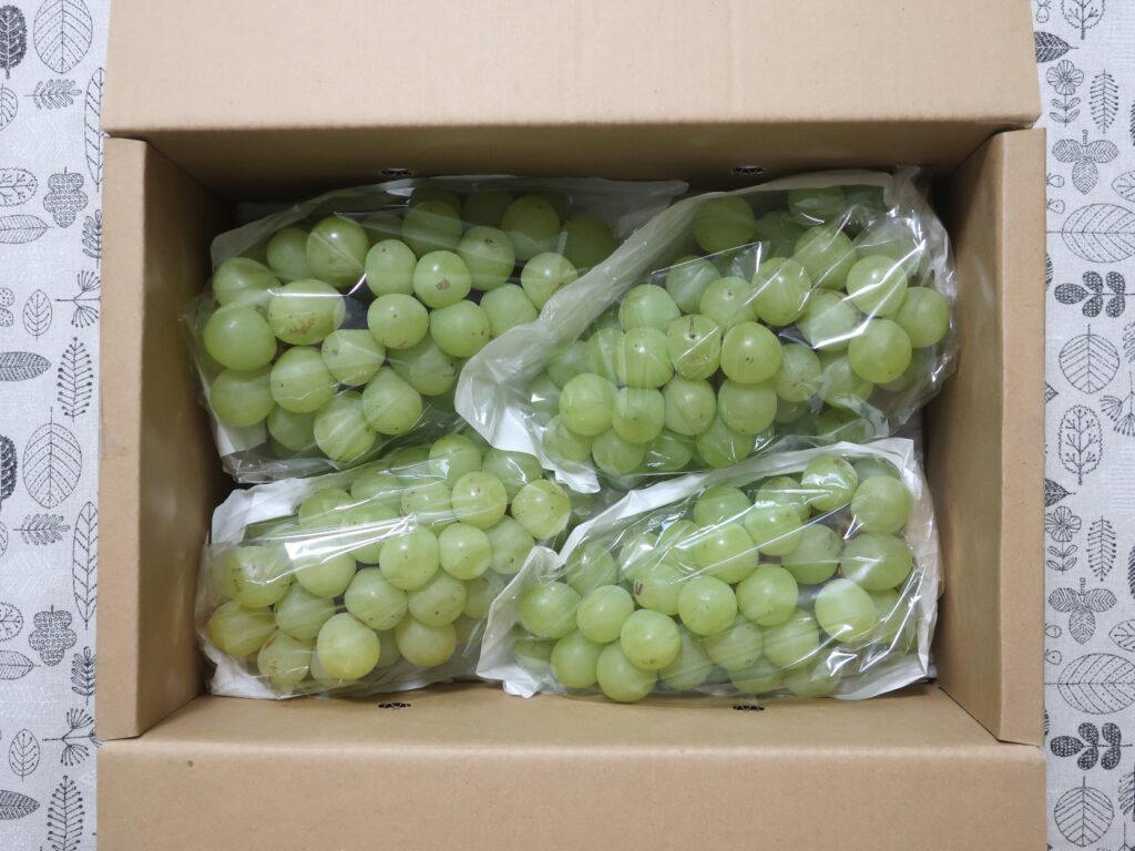 粒の大きさは贈答用に比べるとやや小ぶりで、裂果(実の割れ)やサビ果(かすり症)も一部に見られましたが、味はまったく問題なし!
