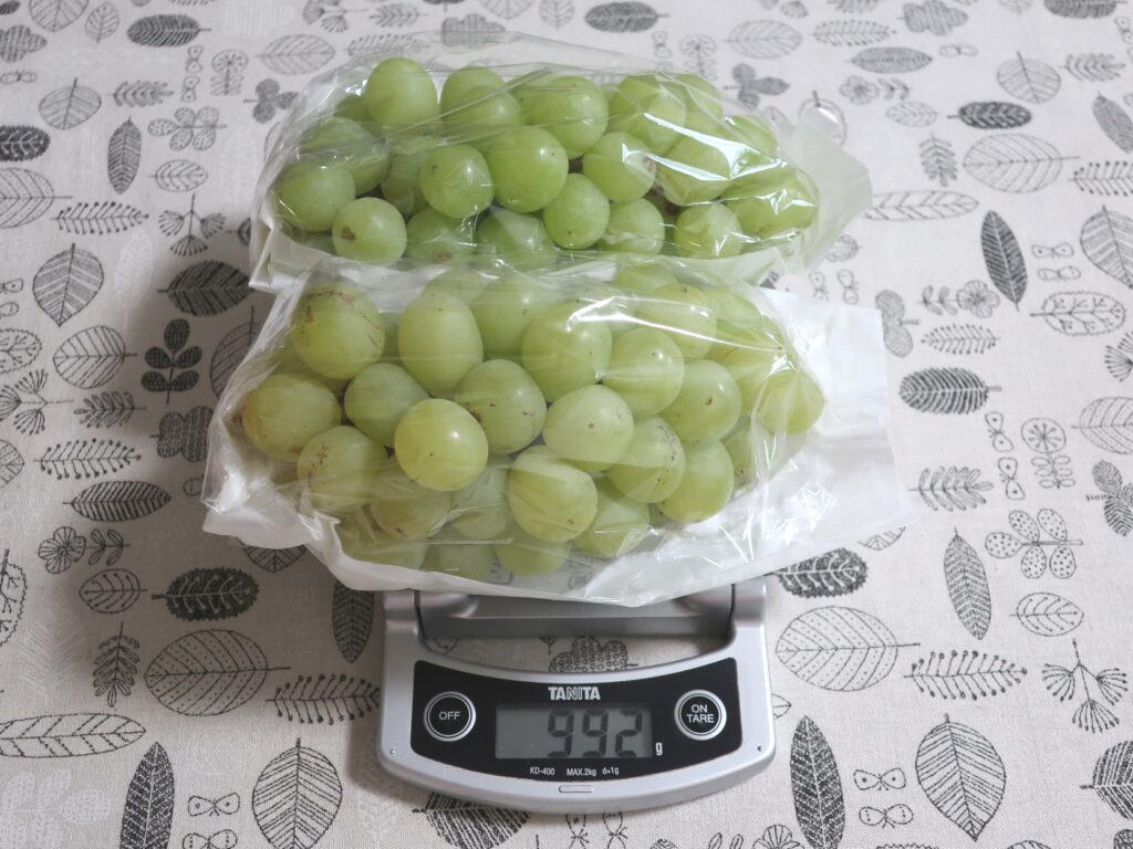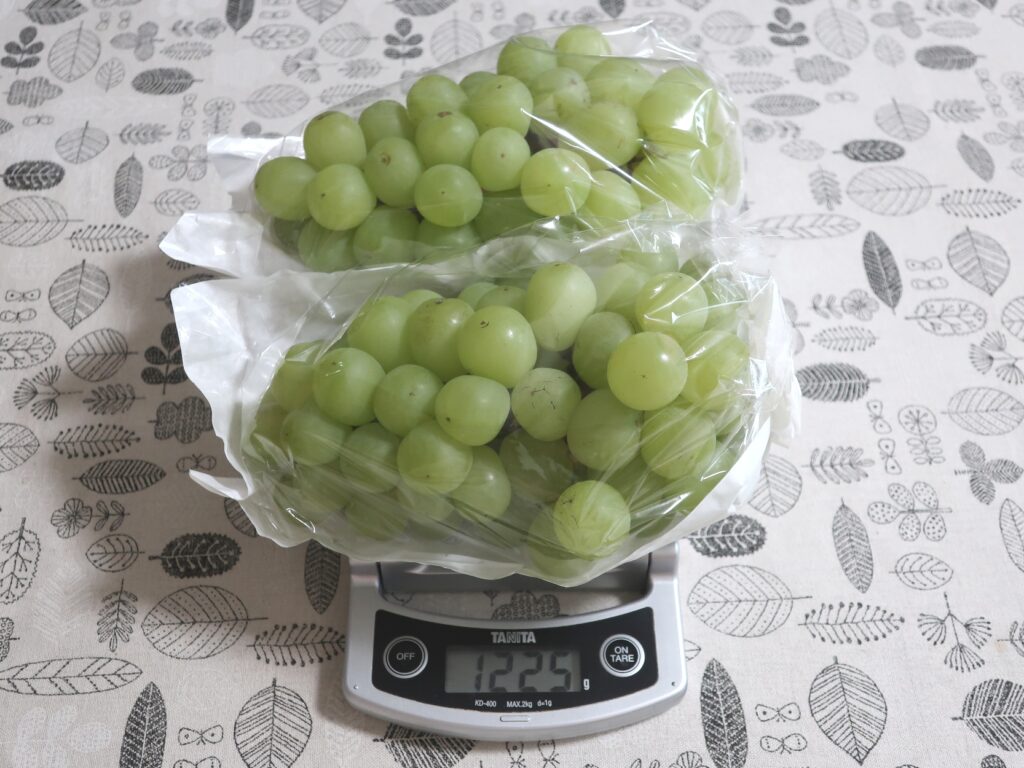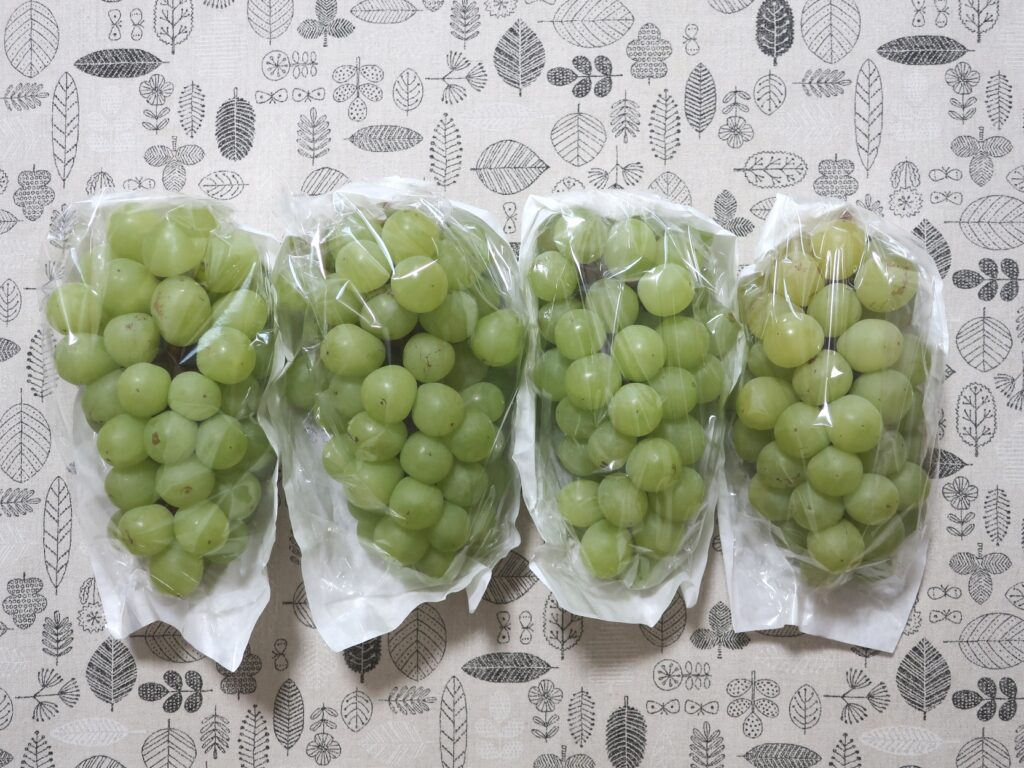 届いた「山形県産 訳あり シャインマスカット 2kg」は、全部で4房・2,217gありました。