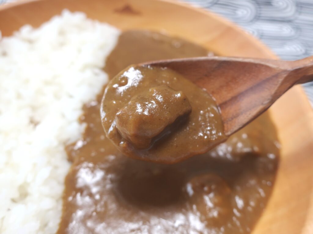 スパイス感はありますが、中辛よりやや甘口の仕上がりで、年齢を問わず食べやすい一品。