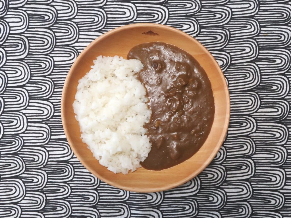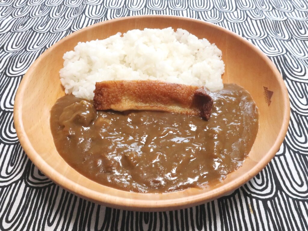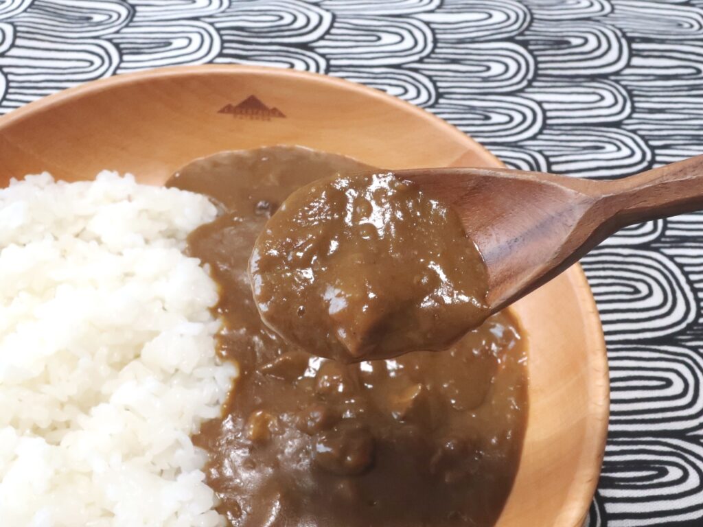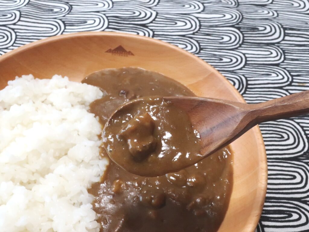 スパイスが程よく効いた、トロミのあるカレーソース。牛肉の旨みがしっかり溶け込んでいて、オーソドックスながら深みのある味わいです。中辛より少しマイルドで、とろみが強めのカレーが好きな人にはピッタリ。