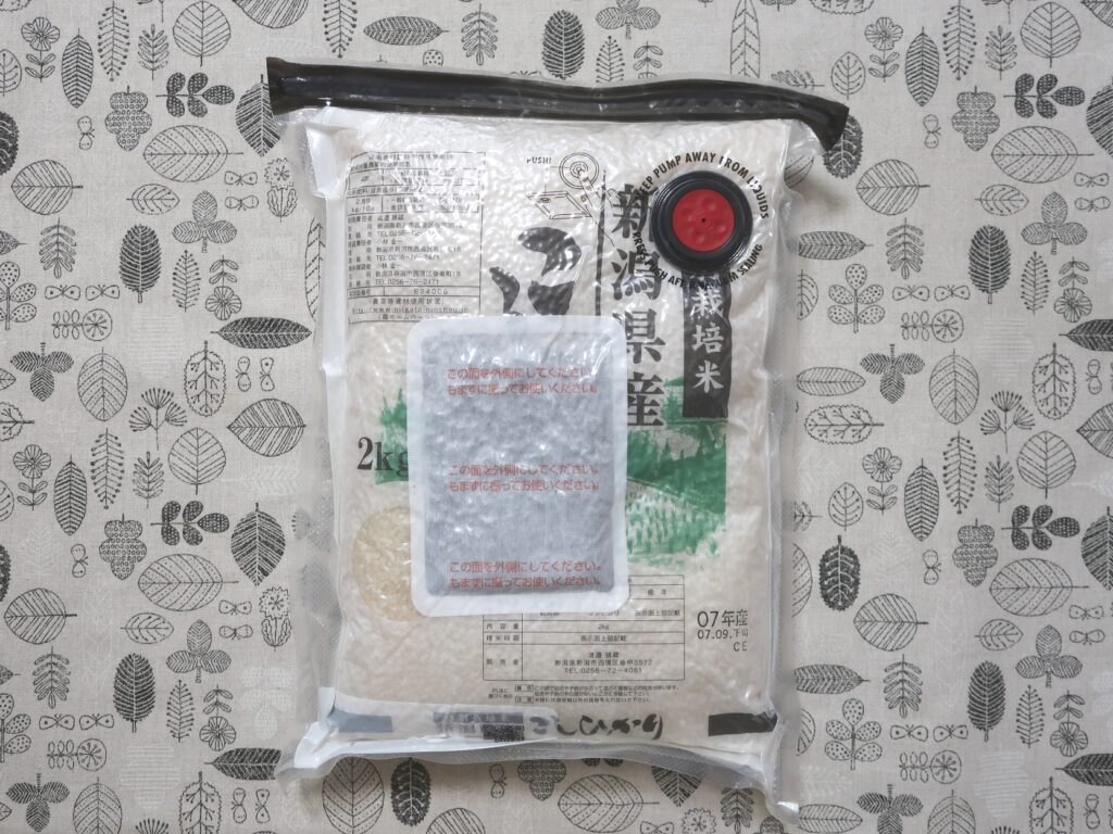 お米は生鮮食品なので、在庫が増えてきたら以下のように真空バッグに入れて保存しています。