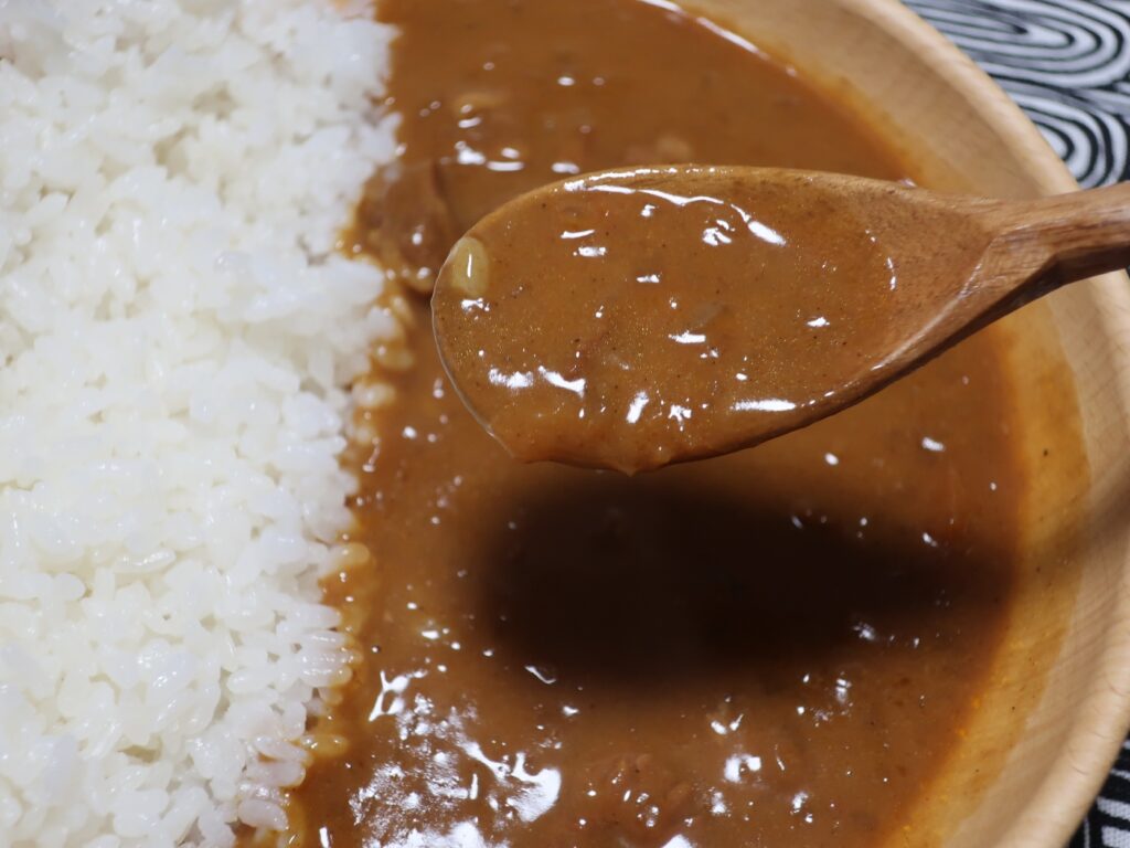 辛さは中辛〜やや辛口。とろみは控えめでサラッとしたタイプです。