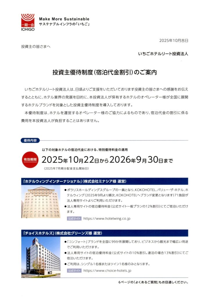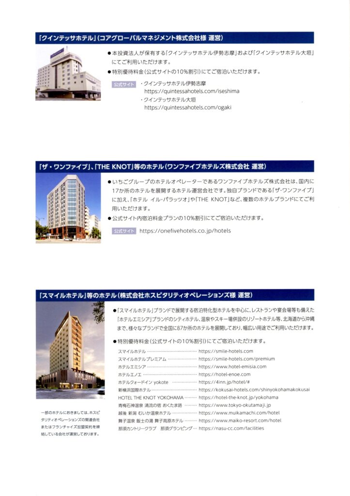 今回は、ホテル特化型リートとしておなじみの いちごホテルリート投資法人(3463) から届いた優待案内を紹介します。