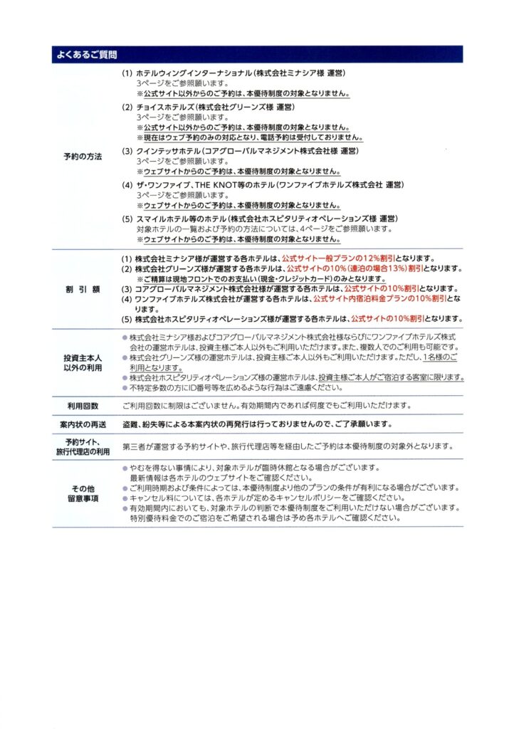 優待案内の詳細