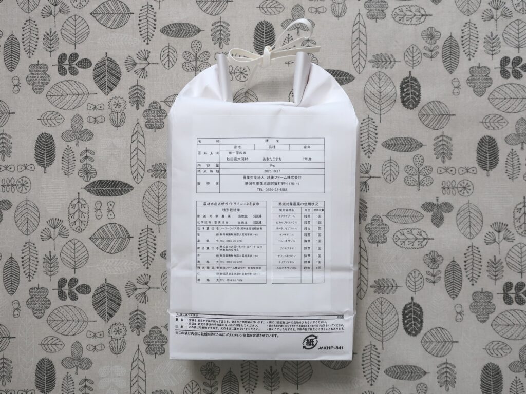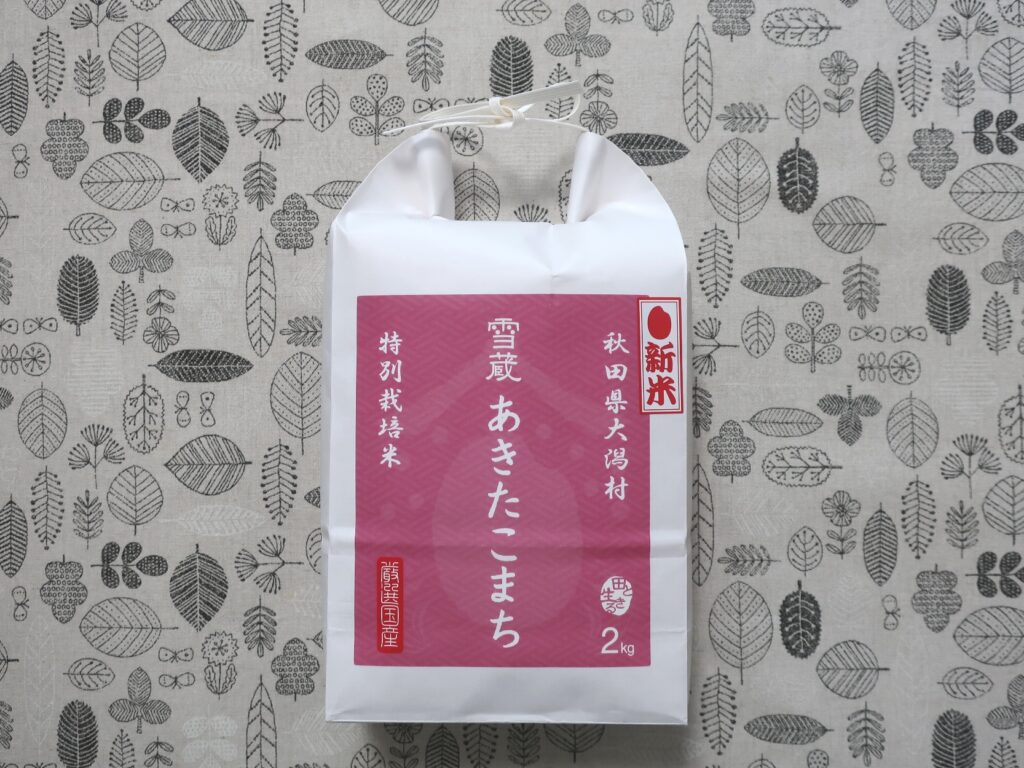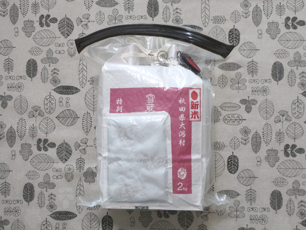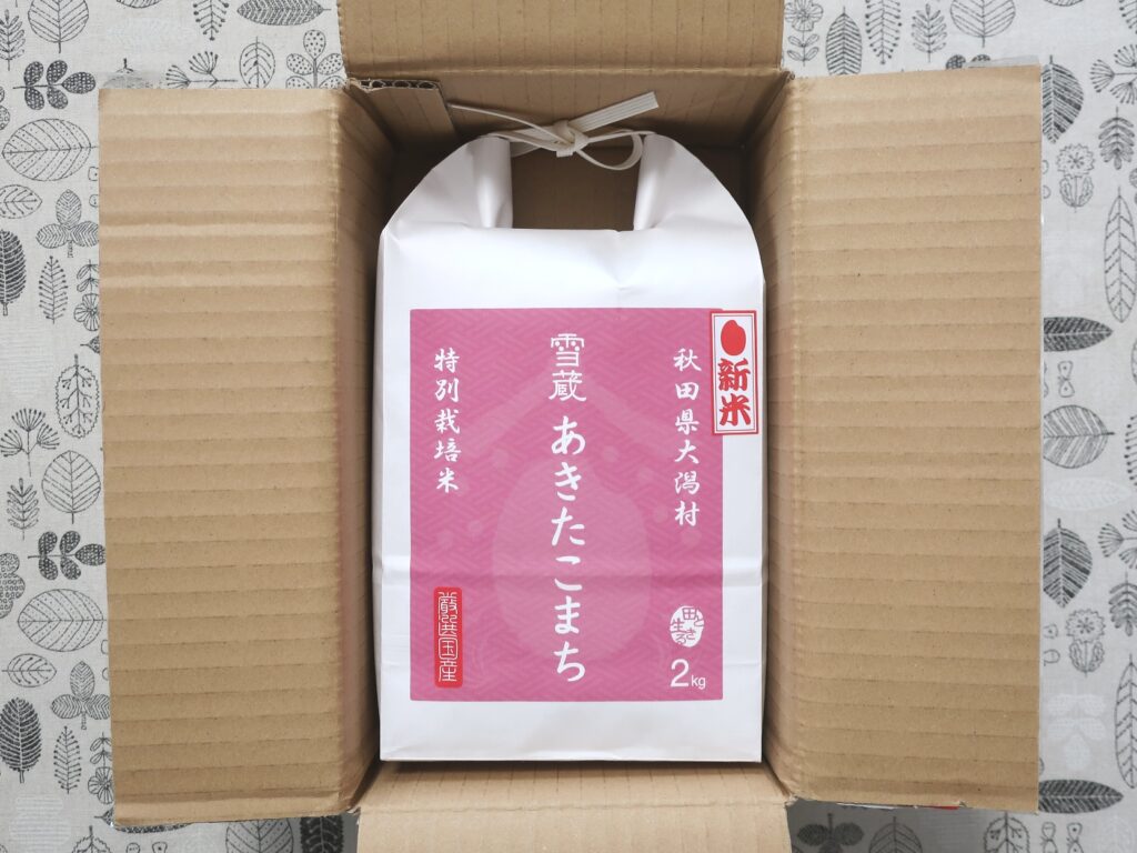 本日到着したのは「秋田県大潟村産 雪蔵あきたこまち 特別栽培米 2kg」です。