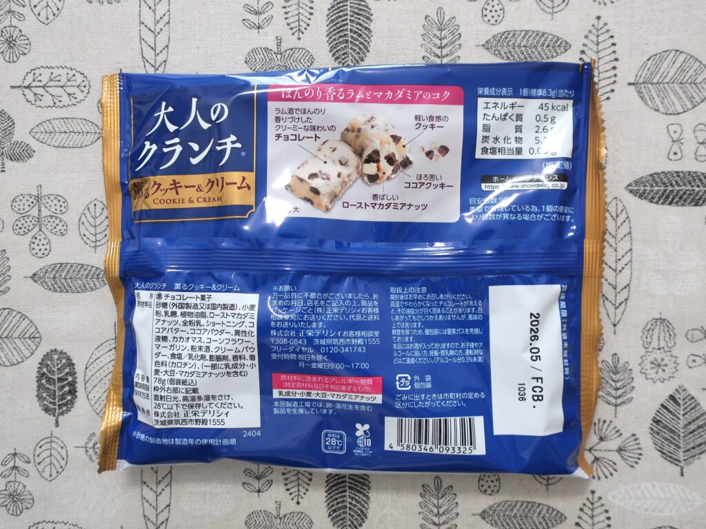 - 大人のクランチ 薫るクッキー&クリーム 78g(383円)
