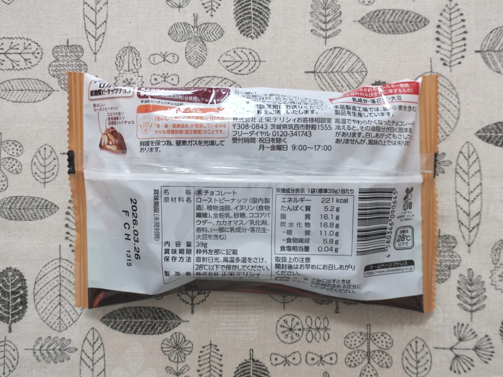 - ロカボ 低糖質ピーナッツチョコ 39g(260円)