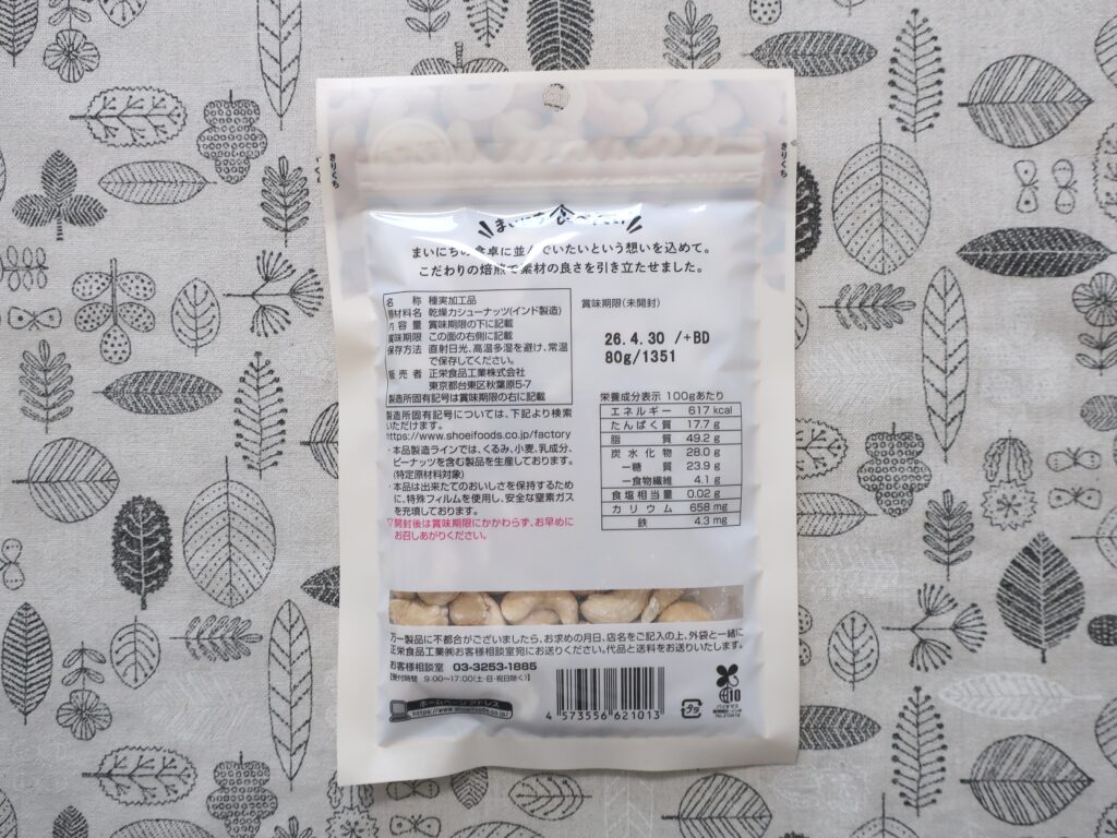 - まいにち食べたい 素焼きカシューナッツ 80g(461円)