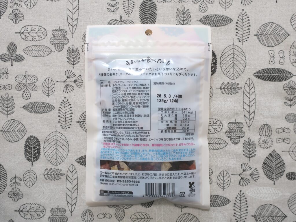 - まいにち食べたい 6種のドライフルーツミックス 135g(398円)