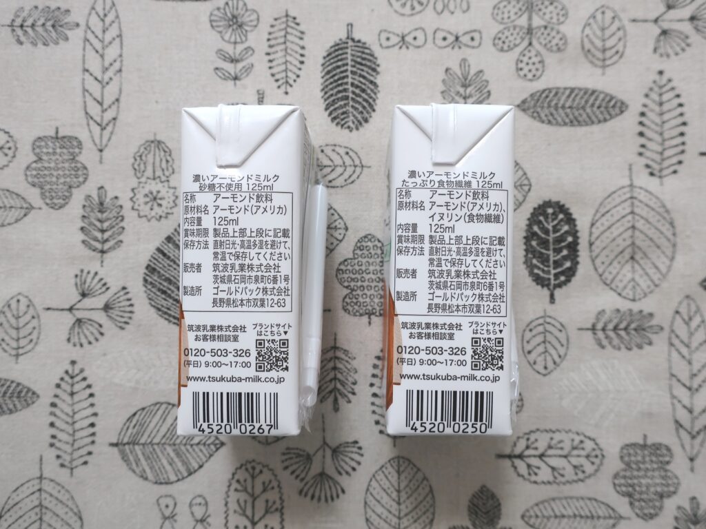 - 濃いアーモンドミルク たっぷり食物繊維 125ml(160円)