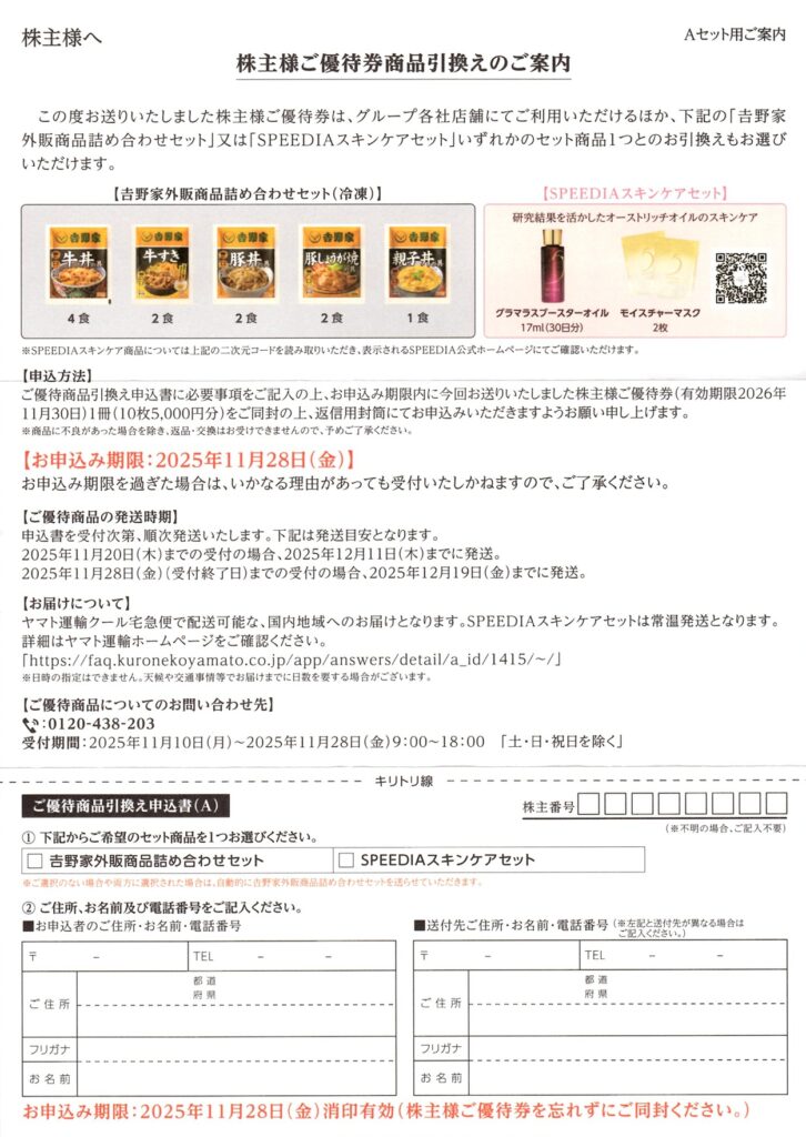 吉野家外販商品詰め合わせセット」または「SPEEDIAスキンケアセット」と交換可能できます。