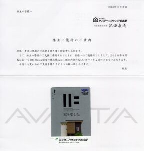 今回は、戸建住宅事業でおなじみの AVANTIA(8904) から届いた株主優待を紹介します。