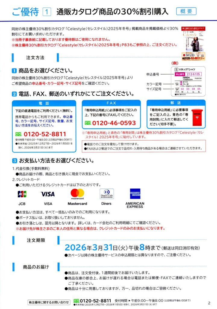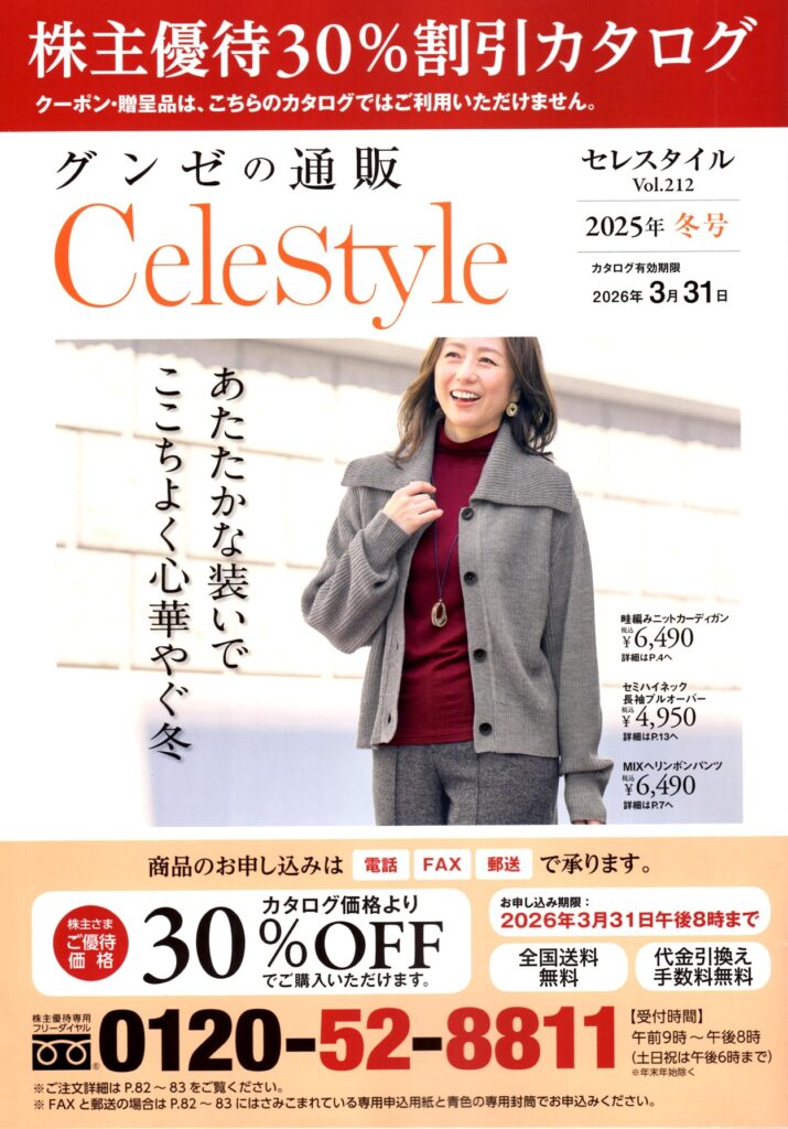 <株主専用通販カタログ>今回同封されていた株主専用カタログは以下の「Celestyle 2025年冬号」でした。