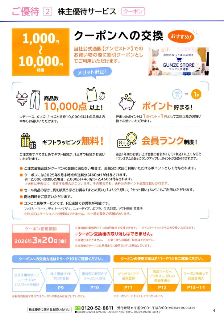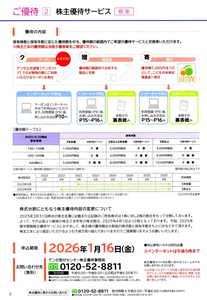今回は、肌着やインナー製品でおなじみの グンゼ(3002) から届いた優待案内をご紹介します。