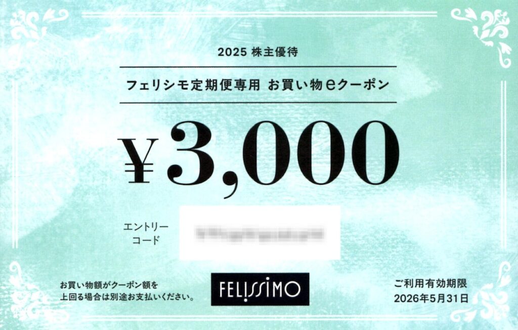 100株(1年以上)なので、「3,000円分のお買物eクーポン」です。